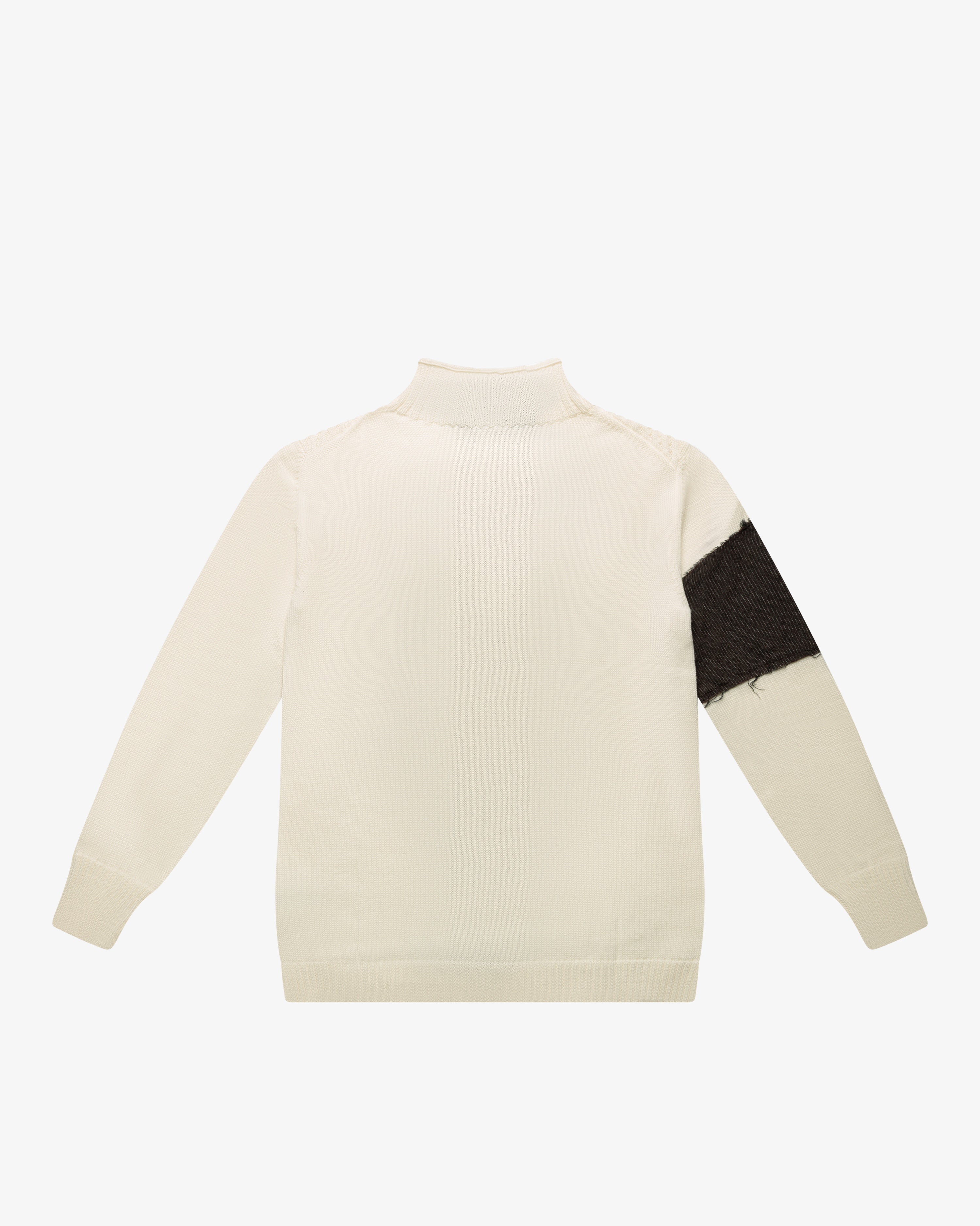 Maglia lupetto a spina di pesce con dettagli a contrasto, bottoni frontali e rifiniture a costine.