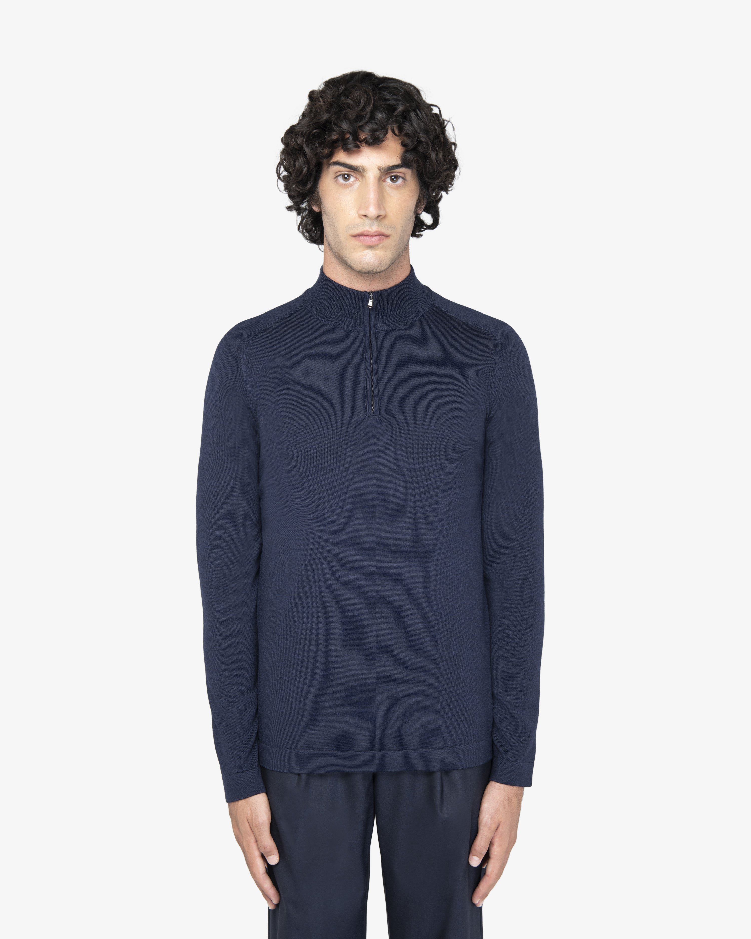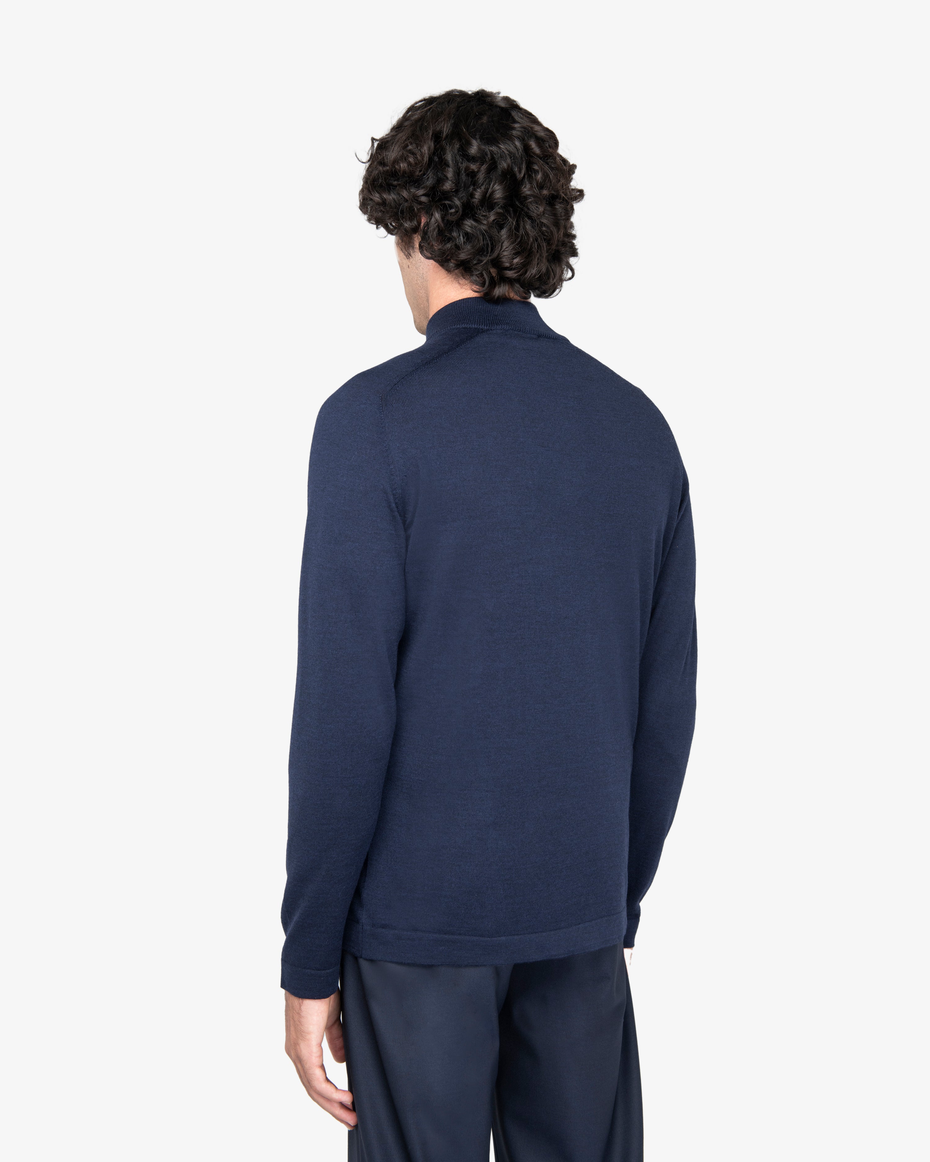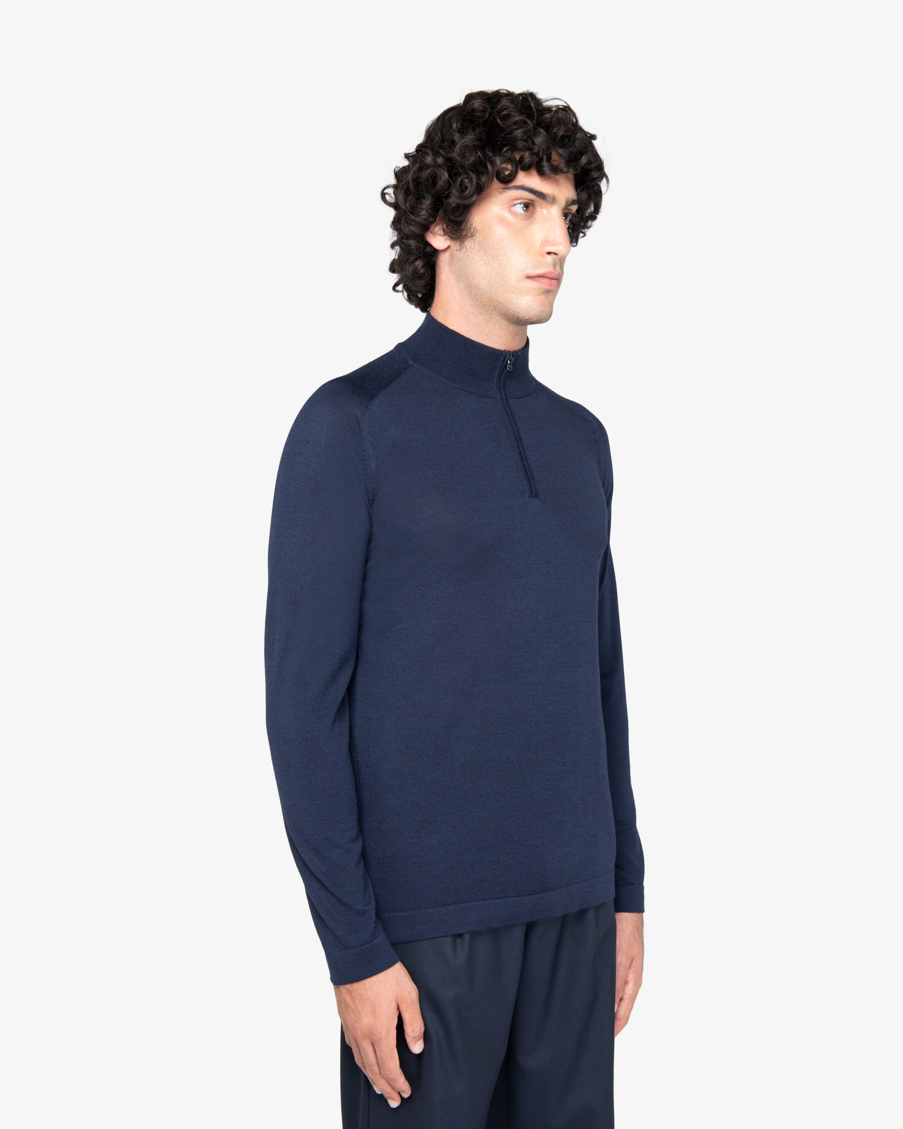 Melange Blue Wool Zip Mock Neck Sweater