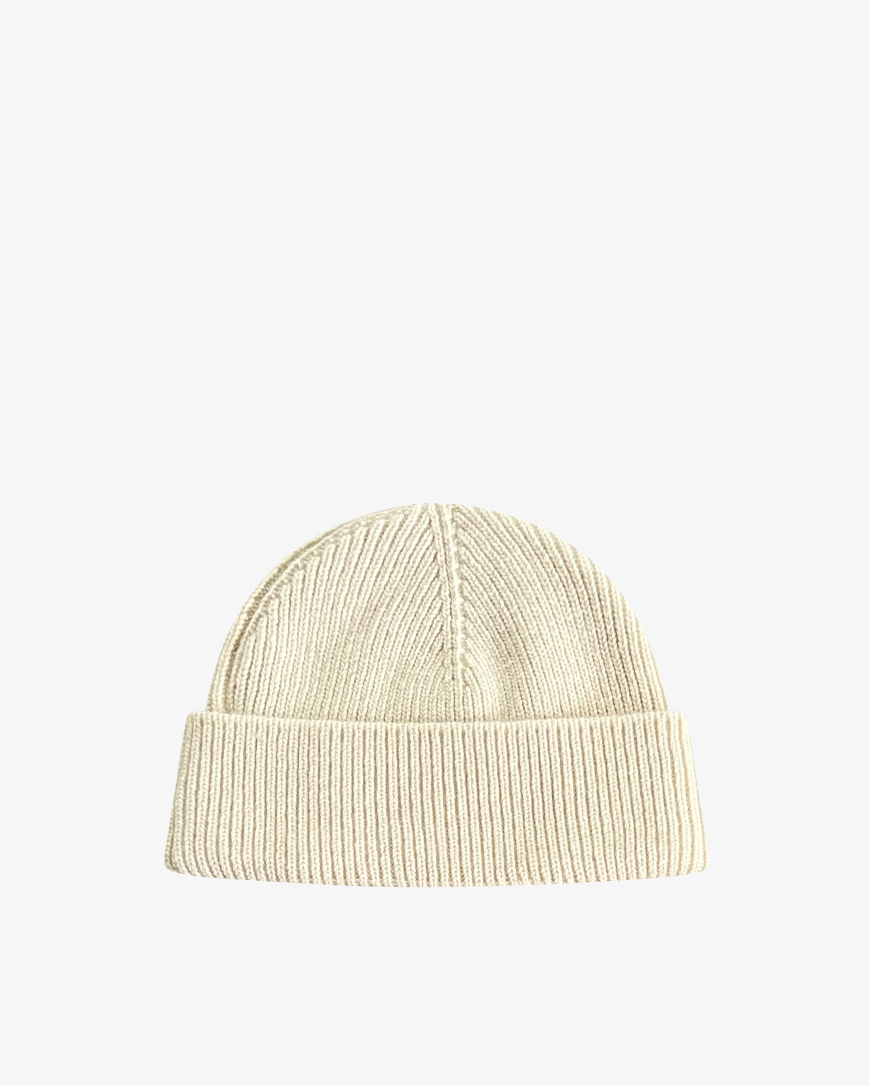 Berretto in lana a costa inglese panna