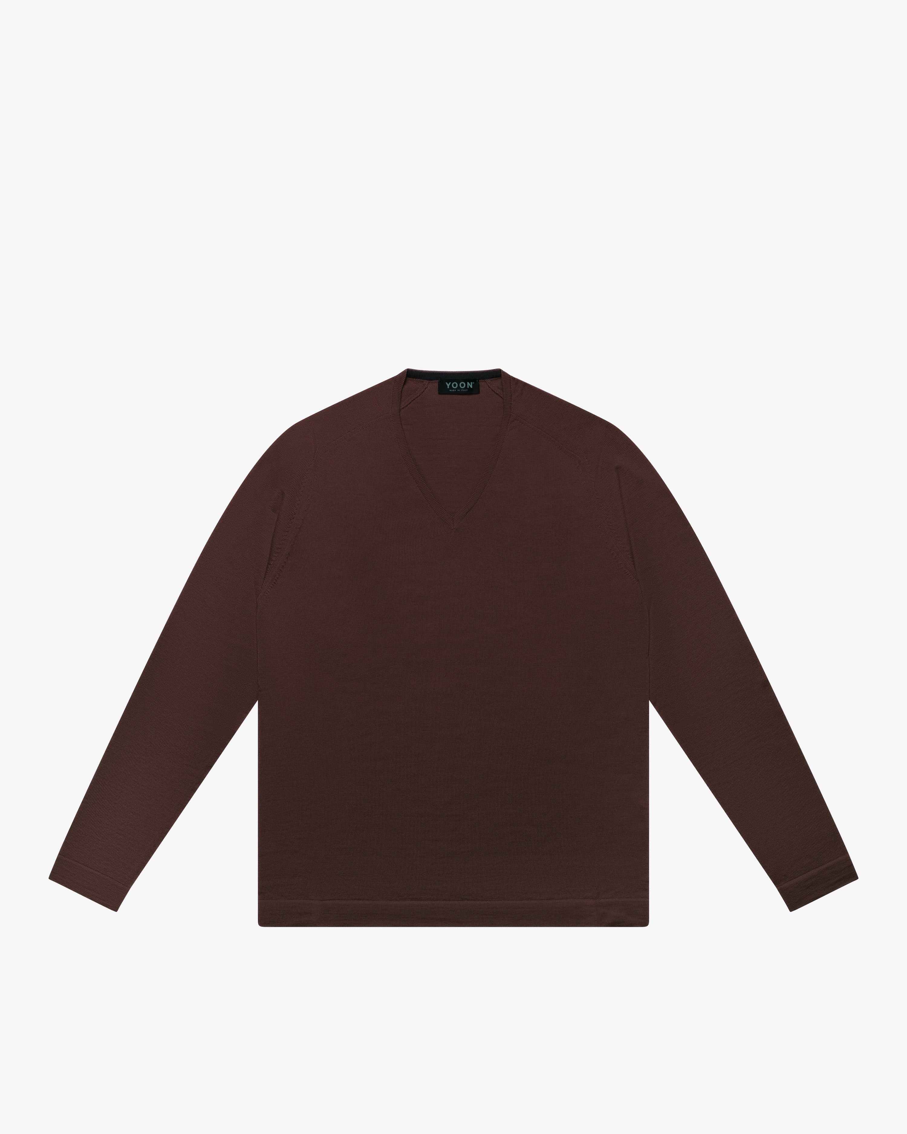 Maglia con scollo a V e lavorazione rasata. Finiture pulite.
