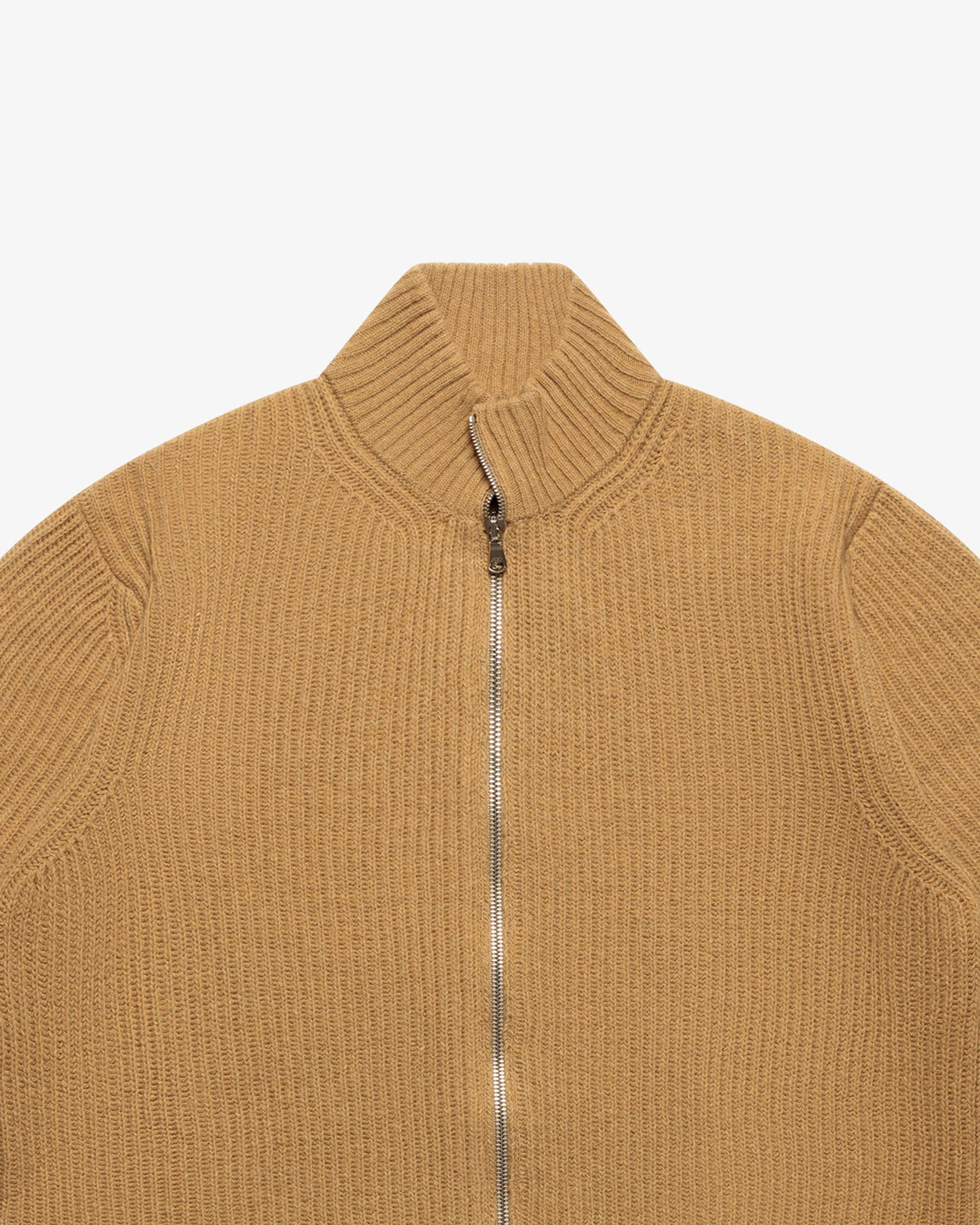 Maglione full-zip con lavorazione a costa inglese, zip a doppio cursore e finiture a costine.