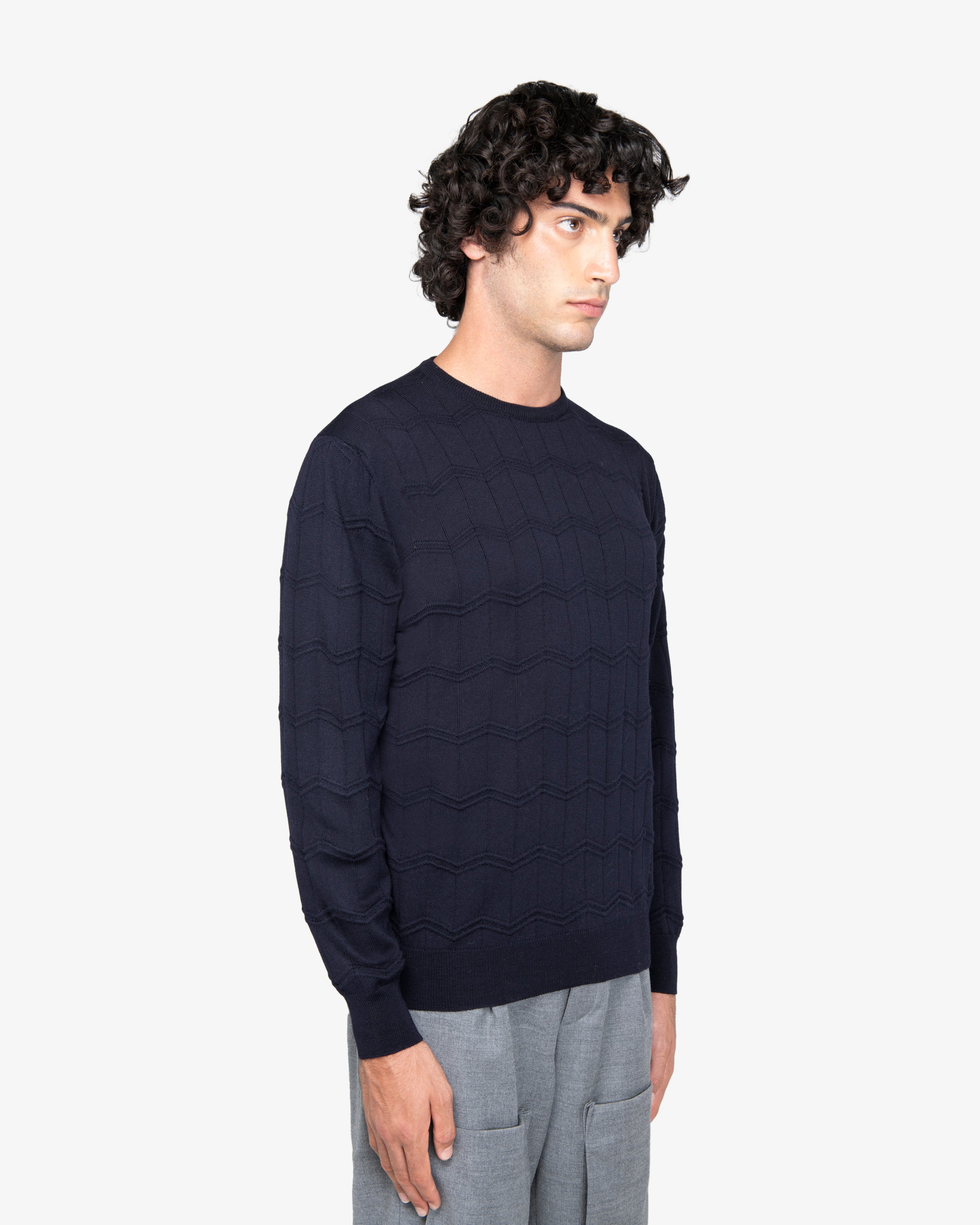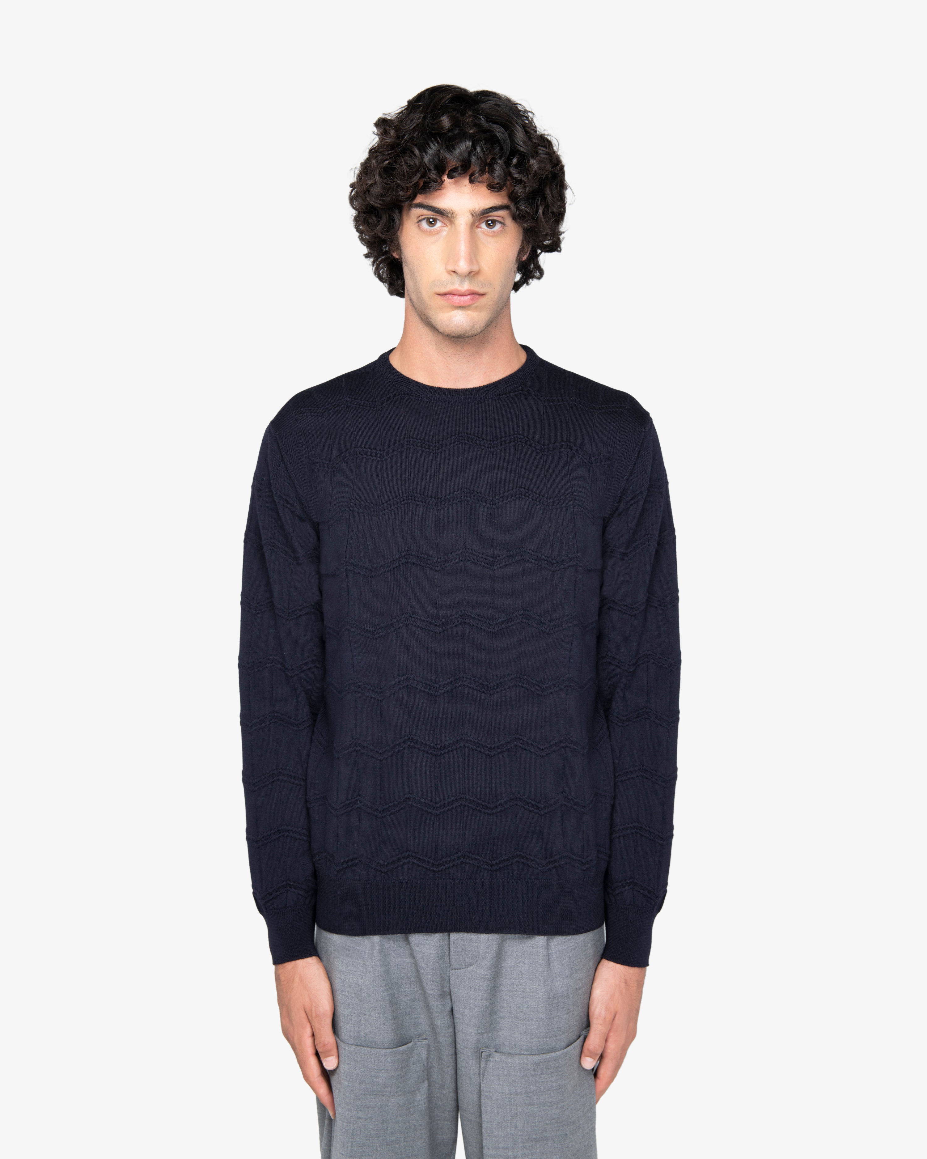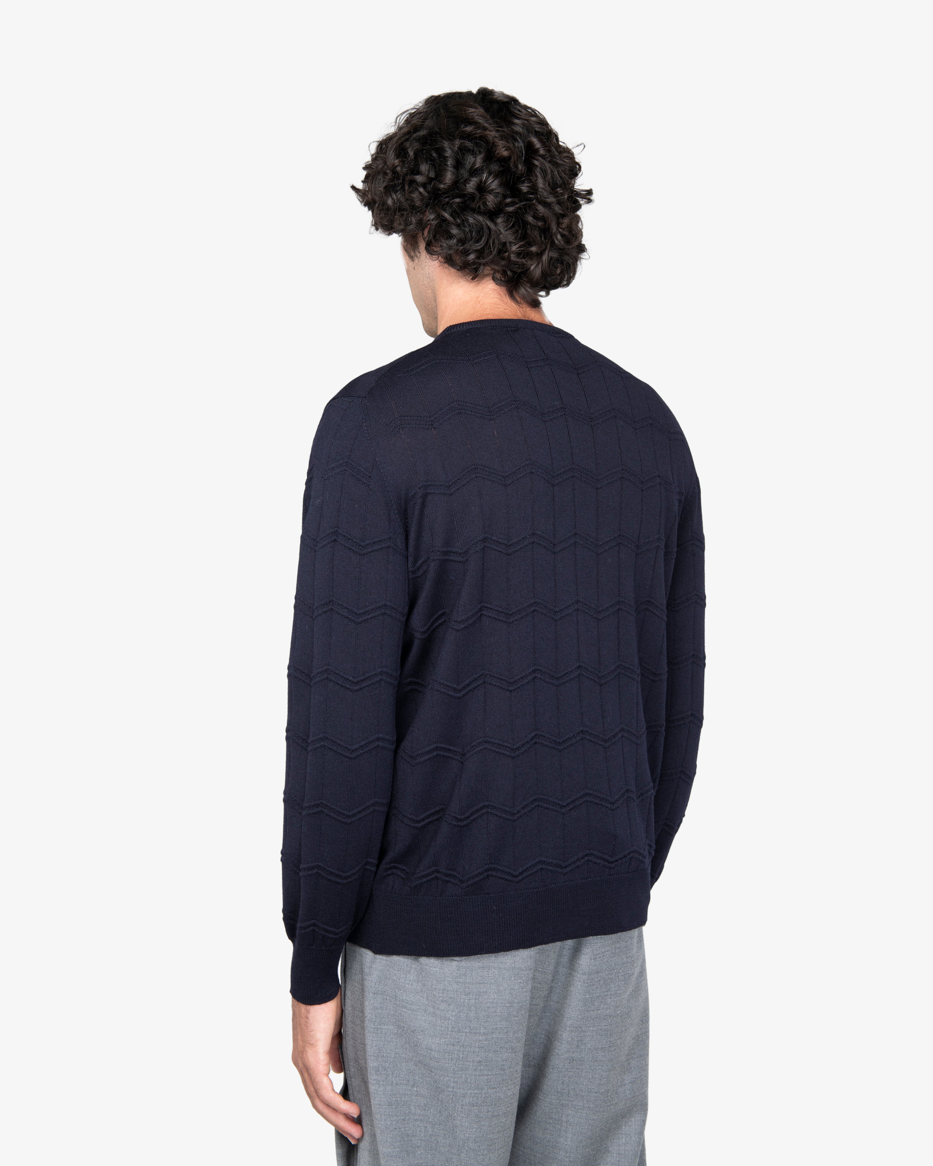 Maglione girocollo in lavorazione mista con finiture a costine.